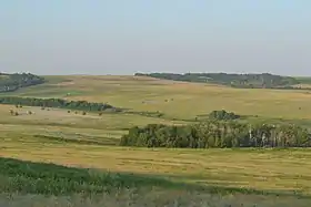 З ґрунтів тут поширені чорноземи, в долинах річок і на вододілах у південній частині трапляються солончаки, на деяких південних схилах є каштанові ґрунти.