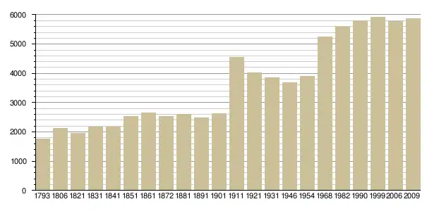 - Recensements de 1793 à 1999 sur Cassini ; recensement 2006 : INSEE, наведено за французькою вікіпедією