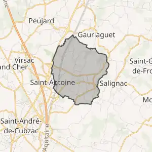 Муніципалітет був розташований на відстані[2] близько 480 км на південний захід від Парижа, 25 км на північний схід від Бордо.