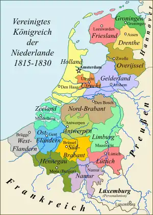 Об'єднане королівство Нідерландів розпалося в 1830 в ході Бельгійської революції. Король Віллем I відмовився визнати незалежність Бельгії, поки в 1839 не був до цього примушений Лондонською угодою.