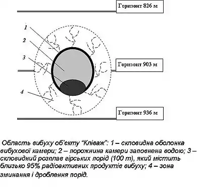 Унаслідок ядерного вибуху утворилася порожнина радіусом 5–6 м, навколо якої сформувалася зона зім'яття (зминання) і дроблення радіусом 20–25 м. Рівень радіоактивності у гірничих виробках і шахтних водах за період спостережень 1979–2000 рр. перебував на фоновому рівні. Після здійснення вибуху відзначено зниження частоти викидів вугілля та породи. У період 1980-85 рр. на горизонті 826 м, розташованому на 77 м вище рівня зарядної камери, відпрацьовано вугільні пласти «Мазур» та «Дев'ятка».