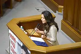 10 листопада 2015 року заявила з трибуни Верховної Ради про те, що складає повноваження народного депутата України[39].