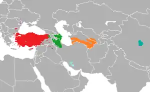 - Турецька мова — поширена у Туреччині, у північному Кіпрі й на Балканах,