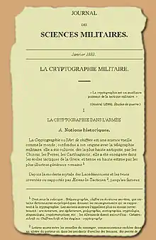 - La Cryptographie Militaire — Оригінал французькою мовою з перекладом на англійську мову