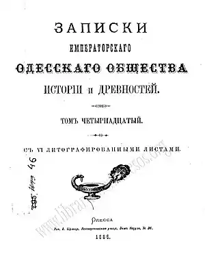 - Устав Одесск. об-ва истории и древностей. Одесса, 1880;