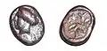 Кізікон, знайдений у Ніконії. Статер. V-IV ст. до н. е.