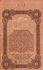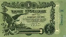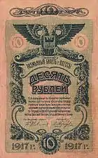 - Купюри 3, 5, 10 рублів друкувалися в друкарні Південно-російського товариства друкарської справи.
