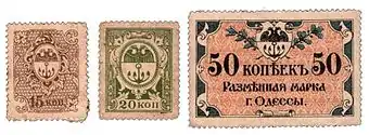 | Марки-гроші і розрахункові знаки м. Одеси випуску 1917—1918 років | |||||||||