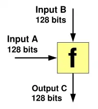 Наприклад, хай аргумент А має довжину в 128 біт, аргумент B теж 128 біт, і вони стискуються в один результат довжини 128 біт. Це те ж саме, якщо б один-єдиний 256-бітовий аргумент стискувався в 128-бітний результат.