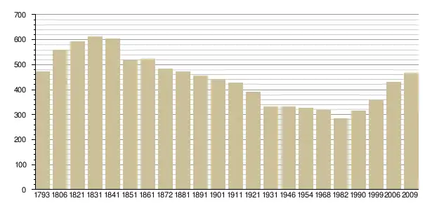 Динаміка населення (base Cassini de l'EHESS pour les nombres retenus jusque 1962[3], base Insee à partir de 1968 (population sans doubles comptes puis population municipale à partir de 2006)[4] · [5] ):