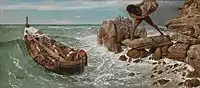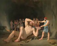 - Велетень-людожер, циклоп Поліфем, зжер у своїй печері декількох товаришів Одіссея. Але Одіссей напоїв і засліпив циклопа і врятувався з іншими товаришами з печери під вовною баранів.