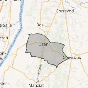 - Розташування муніципалітету Озан на мапі Франції та сусідні муніципалітети
