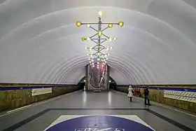 Конструкція станції — односклепінна глибокого закладення (глибина закладення — 59 м). Похилий хід тристрічковий, починається з північного торця станції.