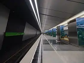 Колонна двопрогінна станція мілкого закладення[3] (глибина закладення — 25 м[1]) з острівною платформою.