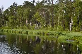 У підліску зростають багно звичайне, суниці лісові, малина звичайна, а також журавлина дрібноплода – рідкісний гляціальний релікт, занесений до Червоної книги України.