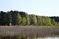 У лісі зростають сосна звичайна, вільха чорна, береза повисла, у прибережній смузі озера - очерет звичайний, рогіз широколистий та вузьколистий, лепеха звичайна, ситник розлогий.