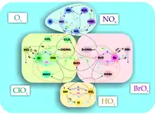 В них гинуть дві молекули озону і регенерується OH- замісник, цикл замикається. OH- далі знову вступає в реакцію з озоном. Повний хімічний механізм складається з сотень реакцій.