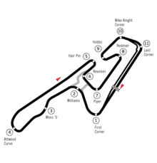 Кільце має дві досить довгі прямі — «старт-фініш» і пряму за поворотом «Етвуд» — і цілий лабіринт поворотів — «шпилька», повороти «Revolver», «Redman», «Hobbs» і «Mike Knight». Це і обумовлює порівняно невисокі середні швидкості, що показуються учасниками, — порядку 170-175 км/год.
