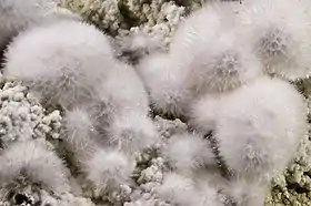 Сингонія триклінна. Утворює дрібні плоскі кристали та сплутано волокнисті маси. Спайність досконала. Густина 2,28 — 2,33. Твердість 5,5. Колір білий з жовтуватим або голубуватим відтінком. Еластичний. Зустрічається в мигдалинах ефузивних порід основного складу разом з апофілітом, цеолітами та іншими низькотемпературними мінералами.