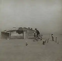 Впродовж 1930-х частини штату почали потерпати від наслідків поганої практики сільського господарства, тривалої посухи та сильних вітрів. Пиловий казан поширився у штатах Канзас, Техас, Нью-Мексико та північно-західній Оклахомі. Він заважав тривалими періодами посухи й аномально високих температур. Тисячі фермерів опинилися у злиднях і були змушені переїхати до більш родючих районів на заході Сполучених Штатів.[59] За двадцятирічний період, що закінчився в 1950 р., зі штату мігрували малозабезпечені сім'ї, а населення штату скоротилось на 6,9 відсотка.