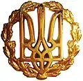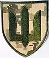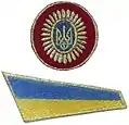 - гаптована, камуфляжна нарукавна нашивка (наліпка) із зображенням загальновійськового знаку Сухопутних військ «Тризуб» (лівий рукав);