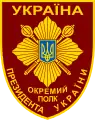 - гаптована, камуфляжна нагрудна нашивка (наліпка) з текстом «Окремий полк Президента України» (зліва).