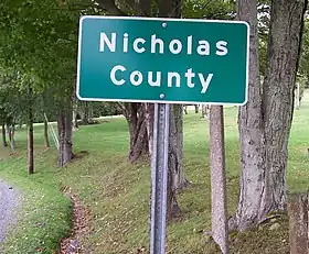 ![]() дорожній знак на кордоні округу Ніколас | |