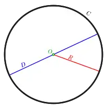 A000796). π визначається як відношення довжини окружності кола C до його діаметру d: