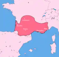 - Буферні зони — посушливі землі, болота й трясовиння, також непридатні з інших причин для хліборобства зони, що заважало міграціям ззовні й обумовлювало певну відокремленість (землі між Луарою і Гаронною, Арагонське пустельне плато).