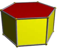 - Шестикутна призма: Дві грані є паралельними правильними шестикутниками, шість квадратів з'єднують відповідні пари сторін шестикутників.