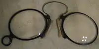 - Пенсне́ (фр. pince-nez від pincer — защемити та nez — ніс) — окуляри, що тримаються на носі за допомогою пружинного механізму. Іноді також, як і монокль, мають шнурок або ланцюжок для кріплення і забезпечення від падіння.