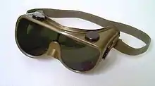 Зварювальні схожі на обтічні, але набагато темніші. Вони захищають очі при зварюванні й різанні металу, причому не тільки від радіації, що випромінює електрична дуга, але також і від іскор.
