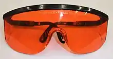 Окуляри для захисту від лазерного випромінювання фільтрують видимі й невидимі частоти лазерних променів. Принцип їх дії спрощується тим, що лазерний промінь містить тільки одну частоту (монохромний, як кажуть художники, або монохроматичний, як кажуть фізики). Але це також означає, що для захисту очей від випромінювання конкретного лазера потрібні свої певні окуляри.