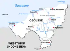 - Oxfam: Social and Economic Development in Oecusse, Timor-Leste, 2008. Архів оригіналу за 30 вересня 2009. Процитовано 3 березня 2016.