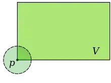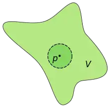 Окіл точки p що належить множині V.