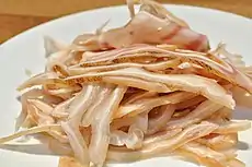 В якості закуски їдять сасімі з дрібно нарізаних вух і рила, приправлених оцтом або соусом місо. Відомою є сукугарасу — тофу з шматочком солоної риби. Також з рила готують міміга (подрібнене свиняче вухо) і чірага (шкіра з лиця свині).