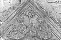 Рельєф із гербами фундаторів Заславської катедри — Олександри Романівни Санґушківни і Януша Янушовича Заславського