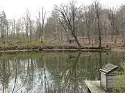 Є три ставки із системою гребель. Їх наповнюють ґрунтові води балки і джерела, що виходять на поверхню у пониззі верхів'я балки. Одне з них живить криницю, інші — струмок Парковий, який наповнює котловини ставків. Колодязь оздоблений кам'яною кладкою з цямриною і покритий верхом. Поблизу джерел росте Вікова верба. Її стовбур сягає 10 м в обхваті. Вона, за переказами, свого часу була одним з межових знаків між суміжними угіддями колишніх тутешніх власників.