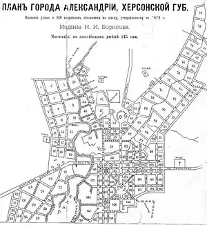 У 1850-х рр. в місті нараховувалось близько 700 будинків, переважна більшість з них була побудована з очерету, сплетеної лози й дерева, тому вони досить погано захищали від частих сильних північних вітрів. Найкращими будівлями був двоповерховий будинок поміщика Леонтьєва й будинок дворянського зібрання. В місті нараховувалось три готелі й десять заїжджих дворів, два салотопних заводи, два, що виготовляли крупчатку, й один цегельний, а також 27 вітряків. На той час в місті була лише одна площа — Базарна. Проблемою було водопостачання, через мілководдя Інгульця і не дуже якісну воду в колодязях.[6]