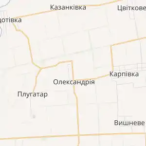 Село Олександрія знаходиться на відстані 2 км від сіл Карпівка та Червоний Плугатар.