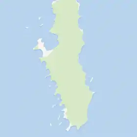 Розміри острова: приблизно 27 x 7 км. Загальна площа 13,68 тис. га[3]. Рельєф острова рівнинний, найвища точка — 343 м над рівнем моря.