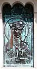 Металевий барельєф Святої Ольги на вході до Десятинного монастиря Різдва Пресвятої Богородиці в Києві