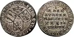 В Ольденбурзі, в період правління останнього графа Антона Ґюнтера (1603-1667), почали карбувалися монети номіналами в ¼, ½ та 1 марки. До 60-х років XVII століття на монети Ольдербурга не датувалися. В часи данського управління (1667-1773) та до самого монетного закону 1873 року марка не карбувалася[7].