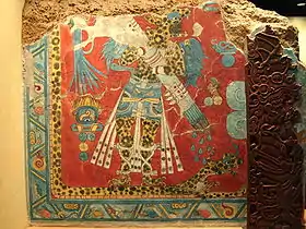 Воїн- ягуар . Фрагмент настінного розпису, культура ольмека-шікаланка, Національний музей антропології ( Мехіко )