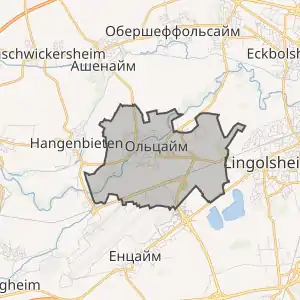 - Розташування муніципалітету Ольцайм на мапі Франції та сусідні муніципалітети