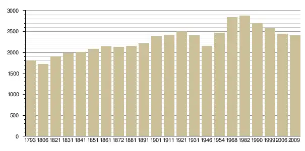 Динаміка населення (base Cassini de l'EHESS pour les nombres retenus jusqu'en 1962[4], base Insee à partir de 1968 (population sans doubles comptes puis population municipale à partir de 2006)[5] · [6] ):