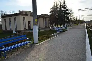1916 року побудований невеликий типовий вокзал у вигляді літери «Н» — даний тип притаманний для Полісся. Його головною характерною рисою є шість ризалітів: з боків і в центрі з кожного боків будівлі. Над кожним ризалітом височить фронтон, на центральному з яких у вигляді мозаїки викладено назву станції. Так само з декору є невеликий цегляний карниз, що побудований уздовж всієї будівлі. Вокзал не багатий на архітектурні надмірності, а зовні скоріше нагадує невелику фортифікаційну споруду, як данина тим часам, коли він був побудований[2].
