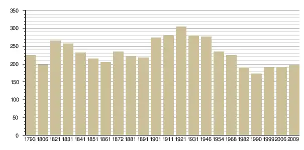 Динаміка населення (base Cassini de l'EHESS pour les nombres retenus jusque 1962[3], base Insee à partir de 1968 (population sans doubles comptes puis population municipale à partir de 2006)[4] · [5] ):