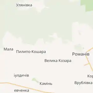 | Адреса ради | 13001, Житомирська обл., Романівський р-н, с.Велика Козара, вул.Врублівська,3 |