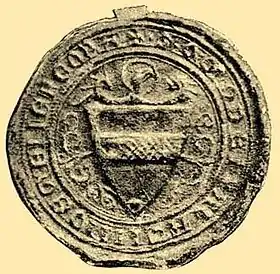 ![]() Печатка палатина Омодея Аба з родовим гербом. Напис по колу: †S(igillum)•OMODEI PALATINI DE GENERE OBA. | |